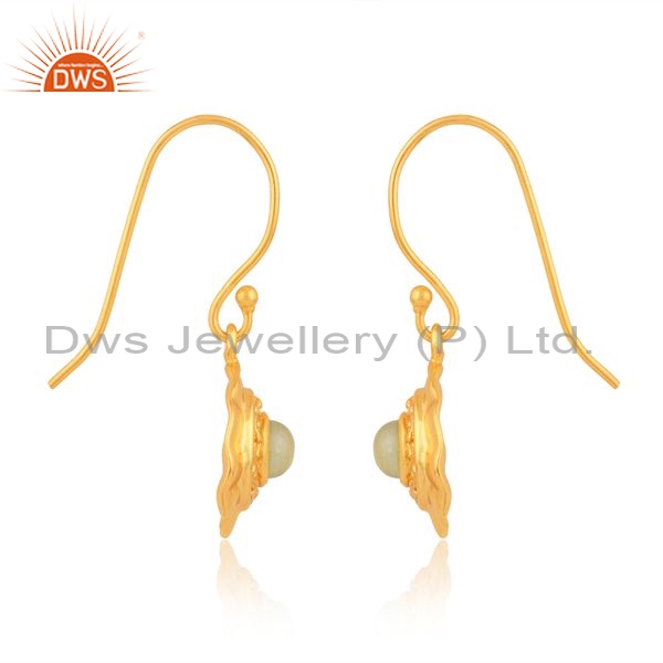 Brass Gold 18 K Drop Earrings With Prehnite Chalcedony