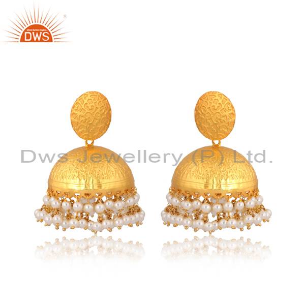 Brass Jhumkas: Pearl Beads With Elegant Charm