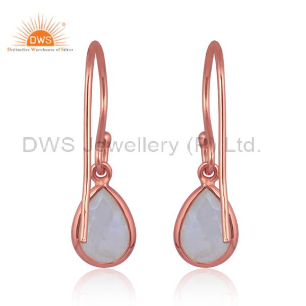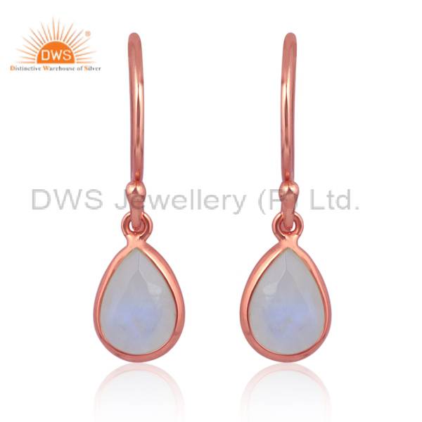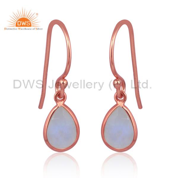 Cancer Birthstone Rose Gold Earrings - Rainbow Moonstone