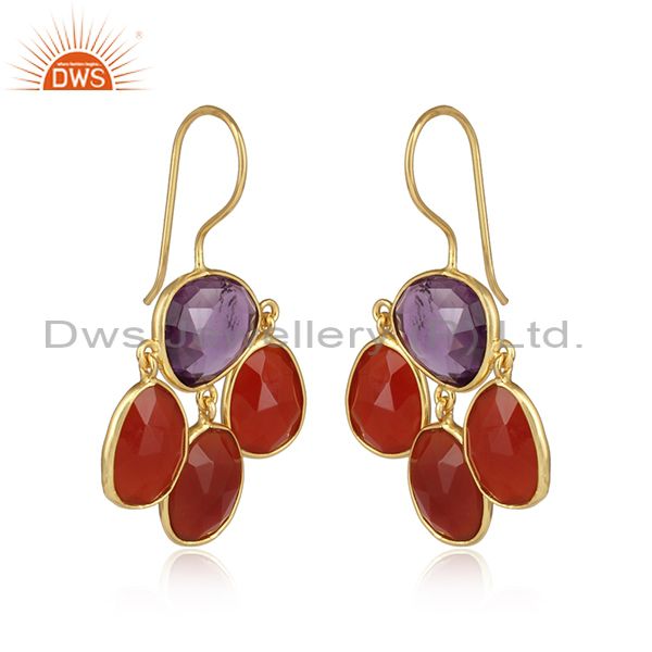 Charming Gold On 925 Silver Amethyst & Red Onyx Earring