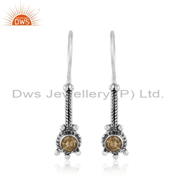 Citrine Gemstone 925 Streling Silver Oxidized Antique Earrings