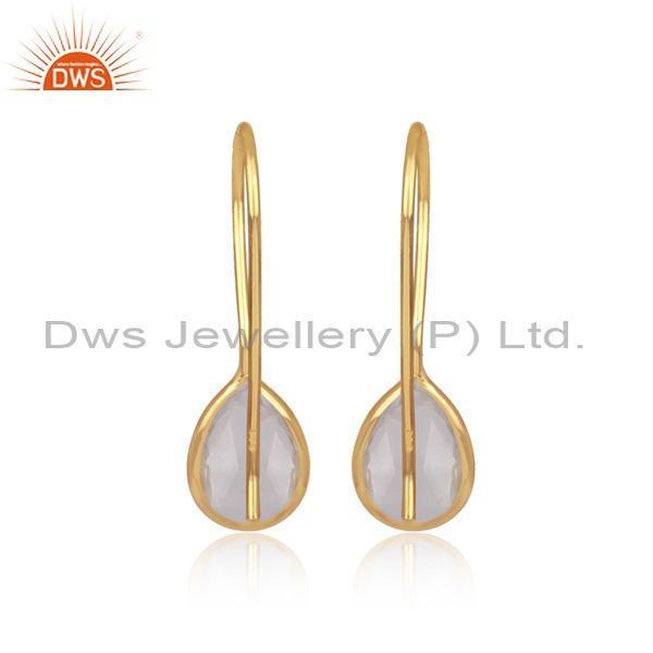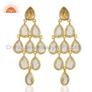 Crystal Quartz Dangle 14K Yellow Gold Plated 925 Sterling Silver Earrings
