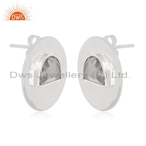 Crystal Quartz Sterling Silver Round Stud Earrings Wholesale Supplier Of Jewelry