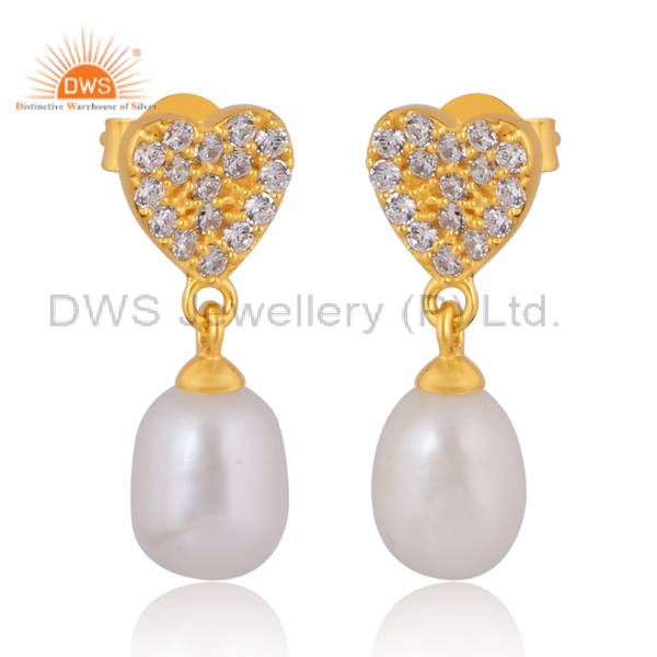Cubic Zirconia Pearl Sterling Silver Earrings For Her