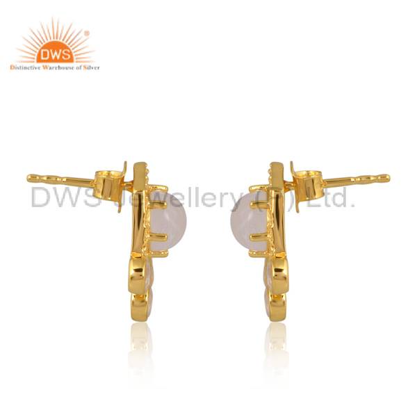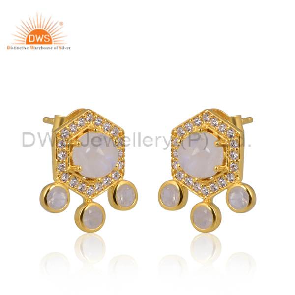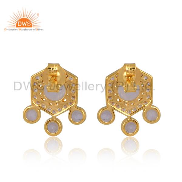 Cubic Zirconia Rainbow Moonstone Gold Palladium Earrings
