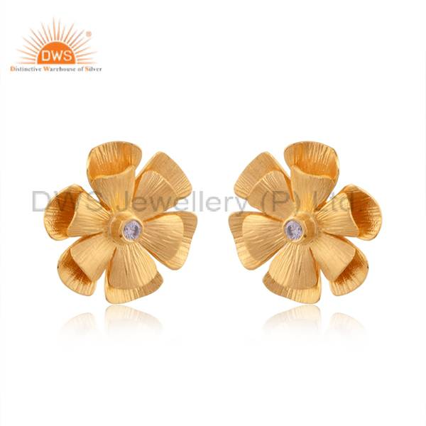 Cubic Zirconia Sterling Silver Vermeil Earrings Glow