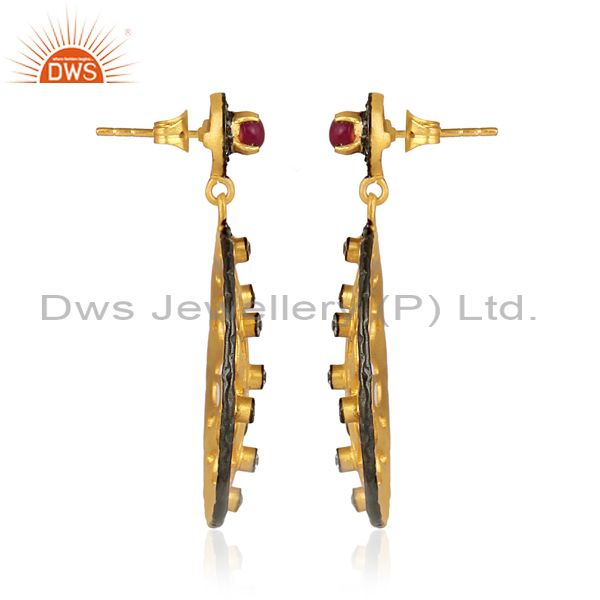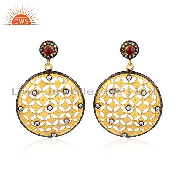 Cz And Hydro Pink Set Brass Gold Turkish Pattern Earrings