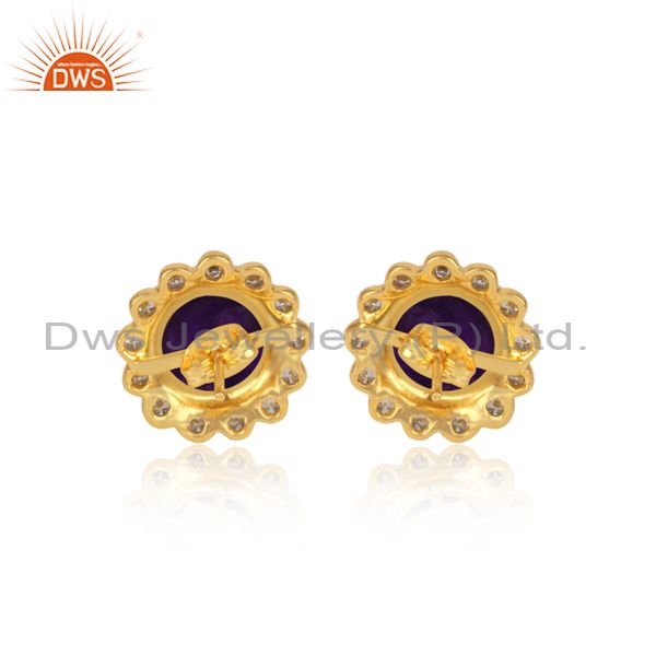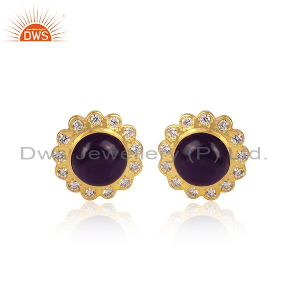 Cz, Aventurine Natural Amethyst Round Brass Gold Earrings