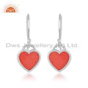 Dainty Stud In White Rhodium On Silver 925 With Light Red Enamel