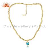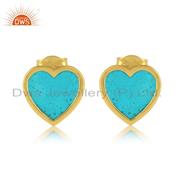Dangle Earring In Yellow Gold Plated Silver With Light Blue Enamel