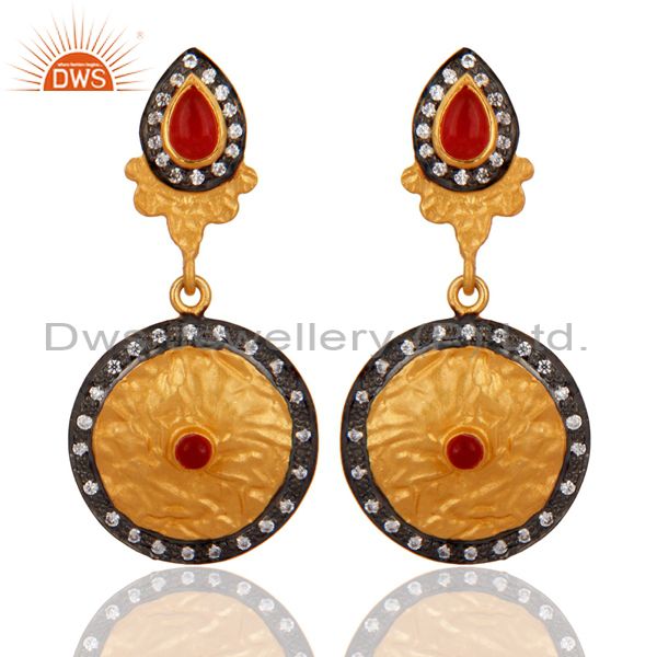 Designer 925 Sterling Silver Gemstone Aventurine Gold Plated Dangle Earrings