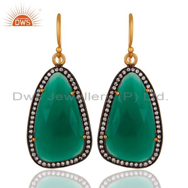 Designer 925 Sterling Silver Green Onyx & White Zircon Earring With Gold Plated