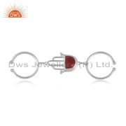 Designer Dainty Hamsa Hand Sterling Silver 925 Studs with Red Onyx