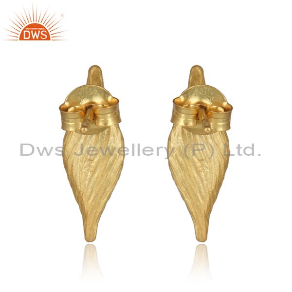 Designer Seedpod Natural Pearl Stud In Yellow Gold On Silver 925