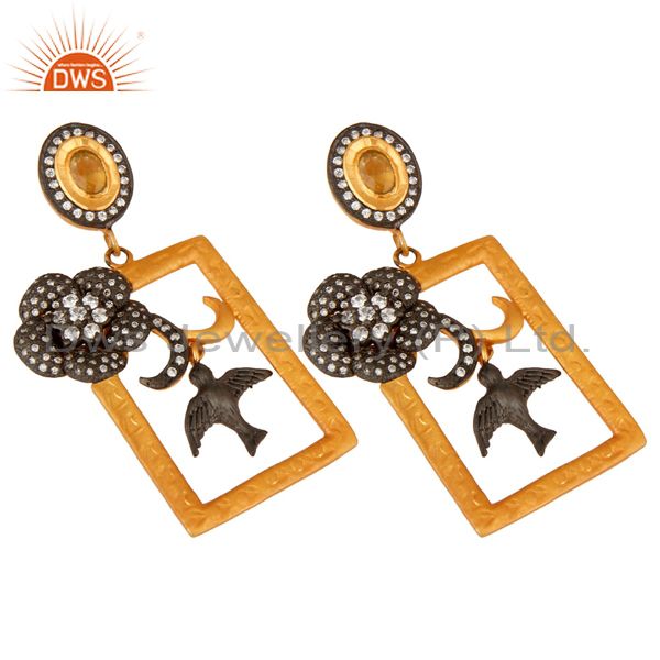Designer Sterling Silver With Gold Plated Earring With Tourmaline & White Zircon