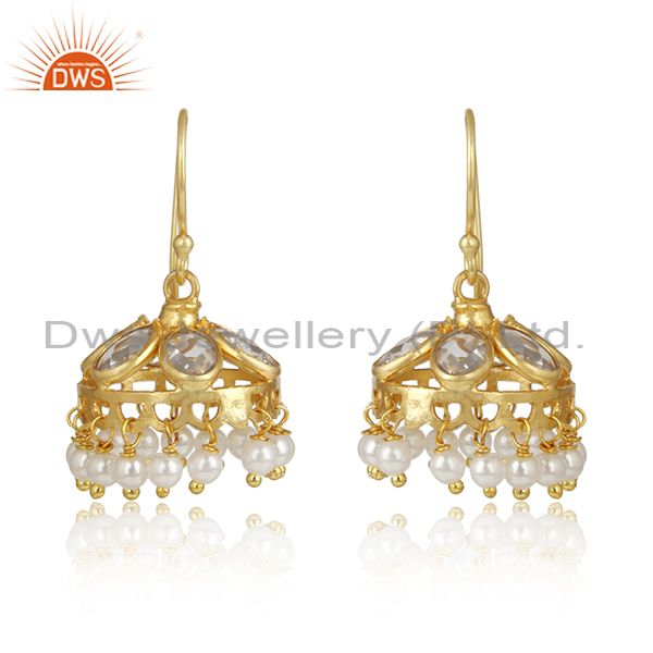 Designer Traditional Jhumka In Yellow Gold On Silver With Pearls