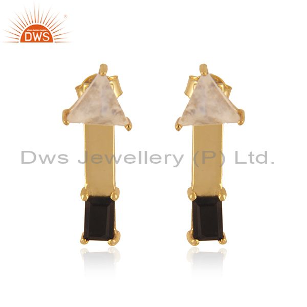 Double Gemstone 18k Gold Plated Sterling Silver Designer Earring Manufacturer