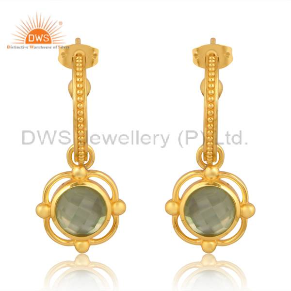 Doublet Glass Green Amethyst Nacre Brass Earrings Chic