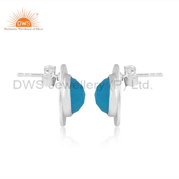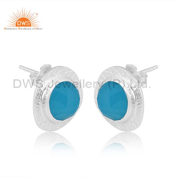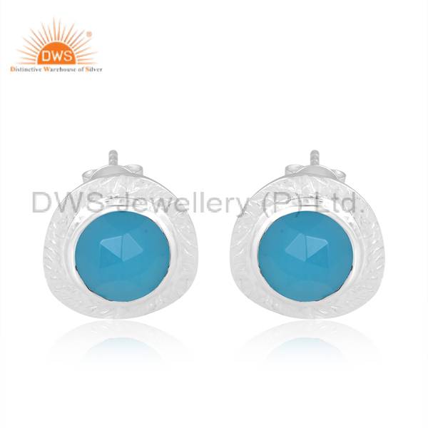 Elegant Aqua Chalcedony Silver Studs - Shop Now!