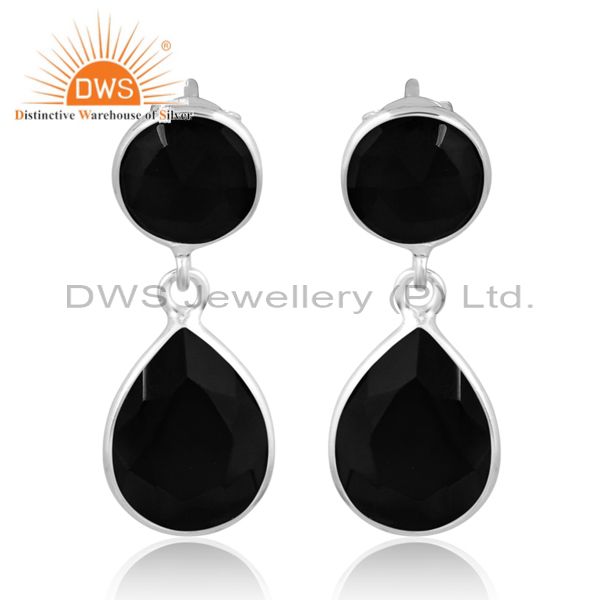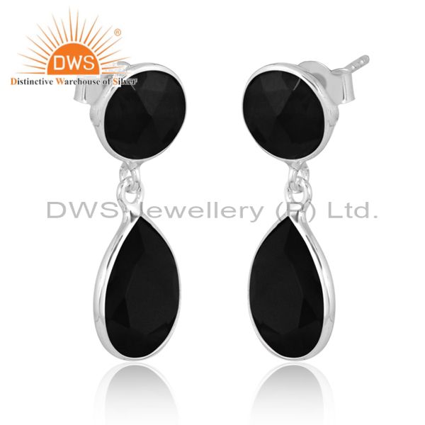 Elegant Black Onyx Silver Earrings For Mom's Special Day