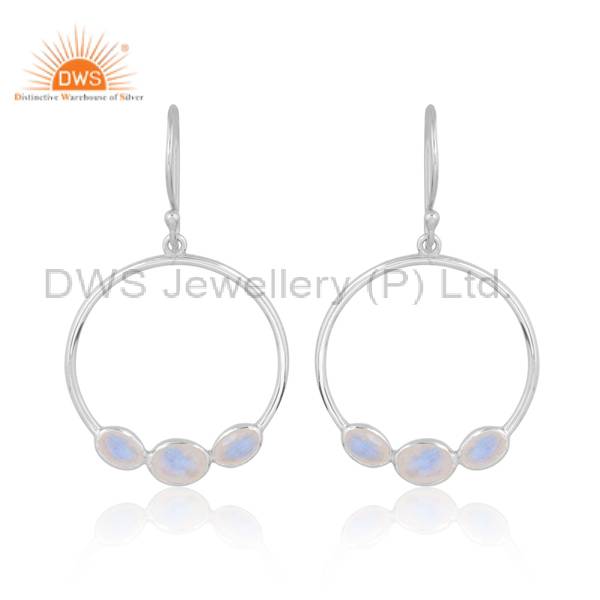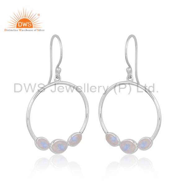 Elegant Cancer Silver Earrings With Rainbow Moonstone