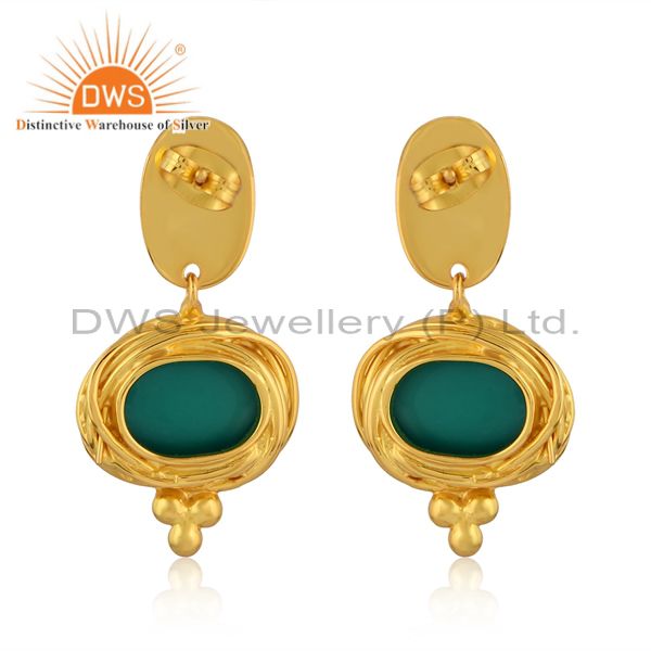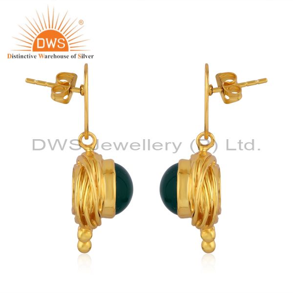 Elegant Green Onyx Brass Earrings: Timeless Beauty