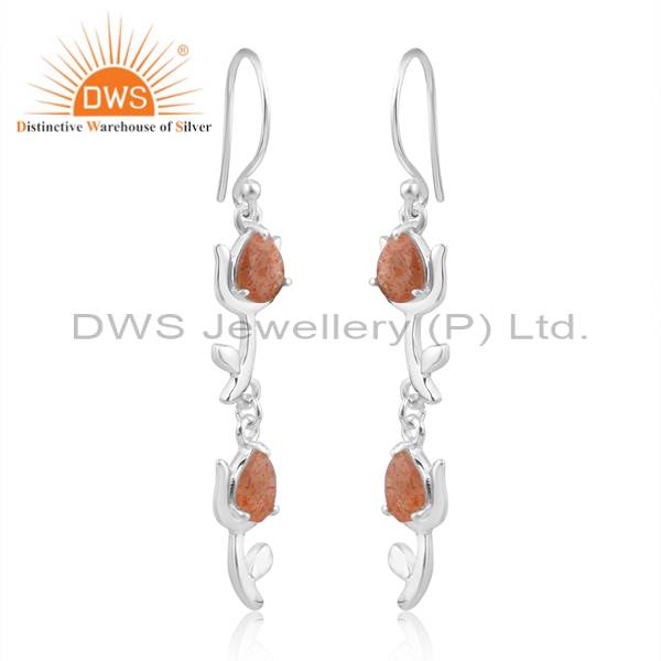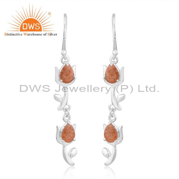 Elegant Natural Sunstone Tulip Flower Earrings For Girls