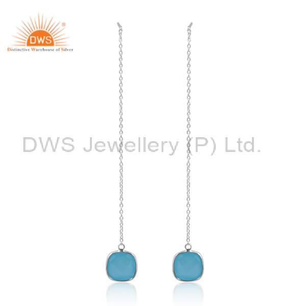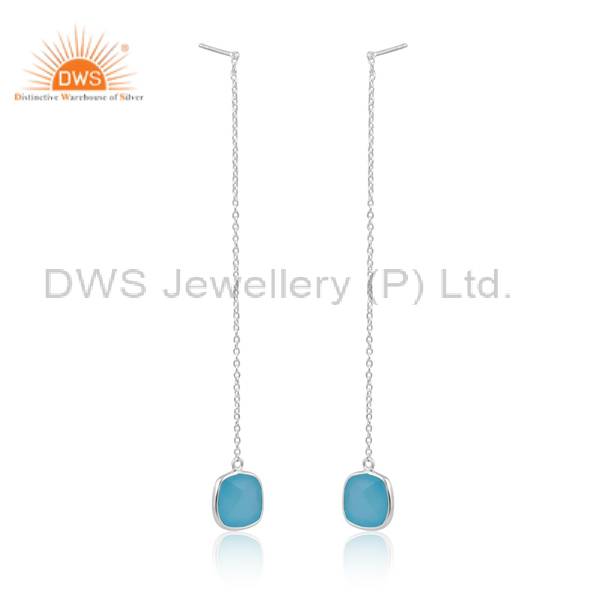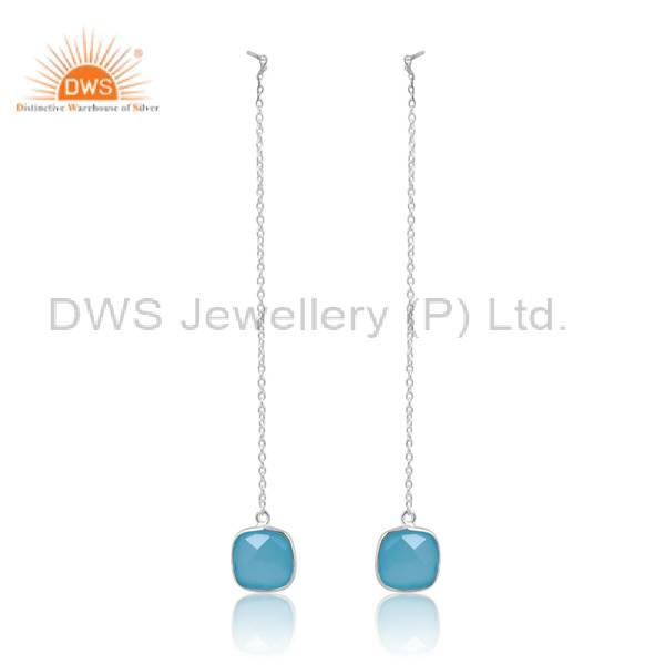 Elegant Silver Earrings With Aqua Chalcedony Gemstone