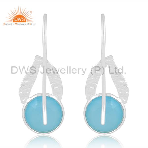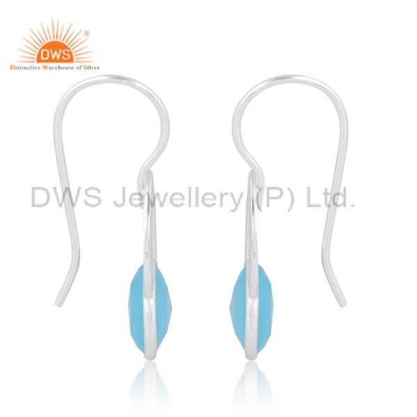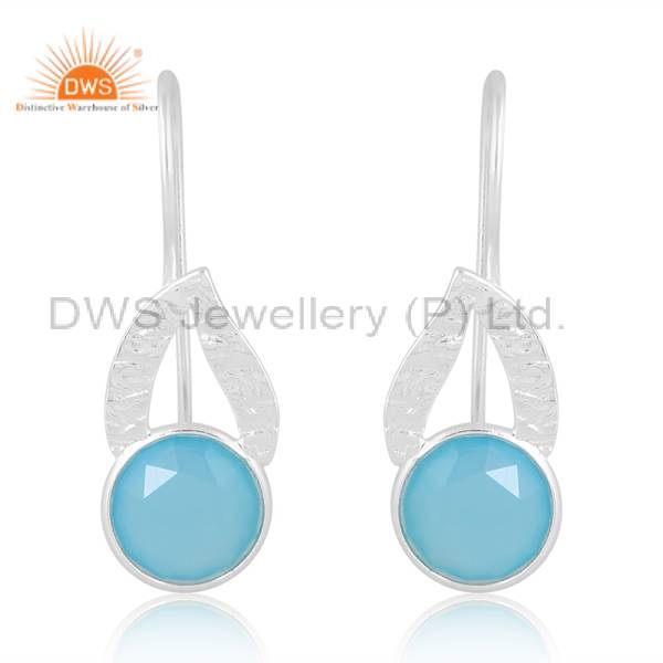 Elegant Solid Silver Earrings With Aqua Chalcedony