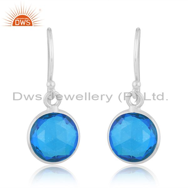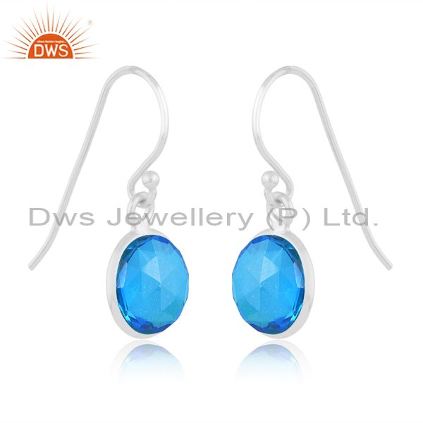 Elegant Swiss Blue Topaz On White Sterling Silver Earring