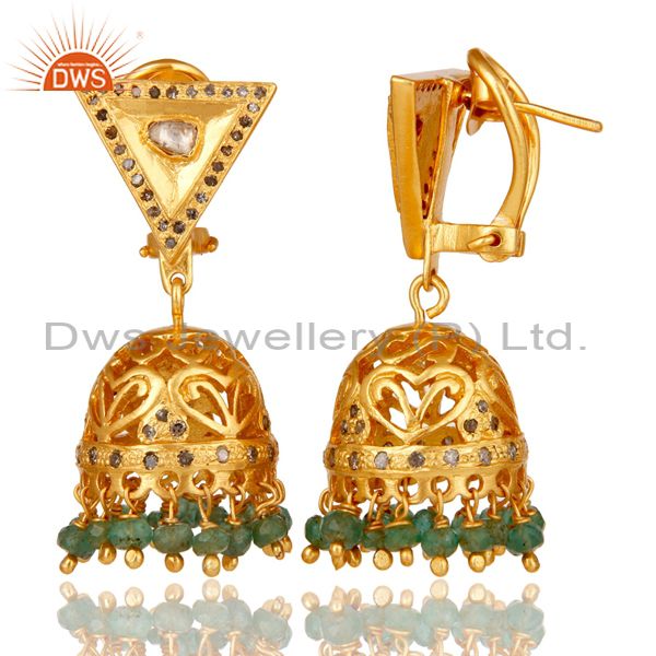 Emerald And Diamond 18K Gold Plated Sterling Silver Traditional Jhumka Earring
