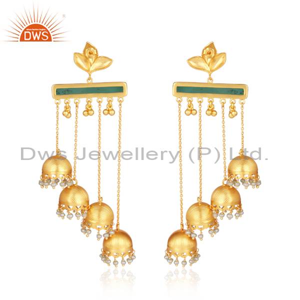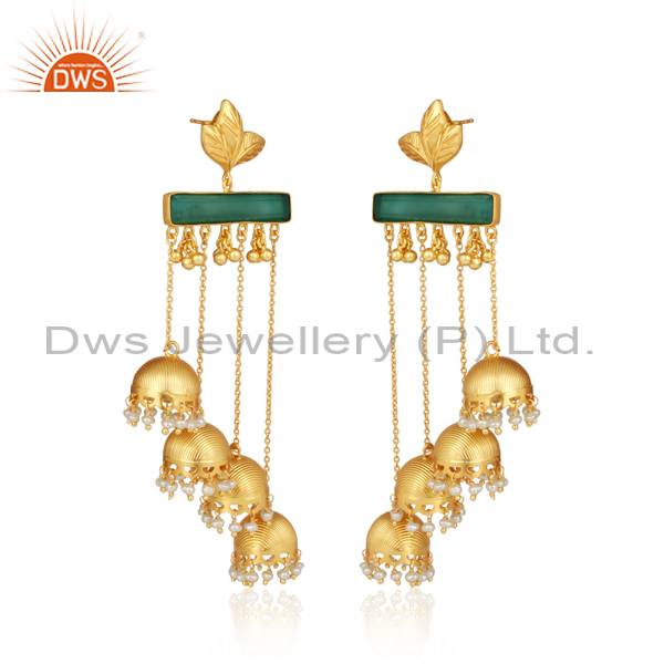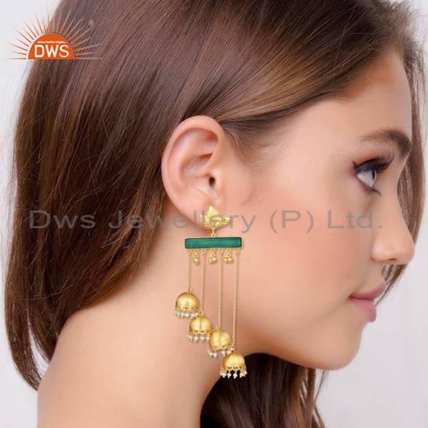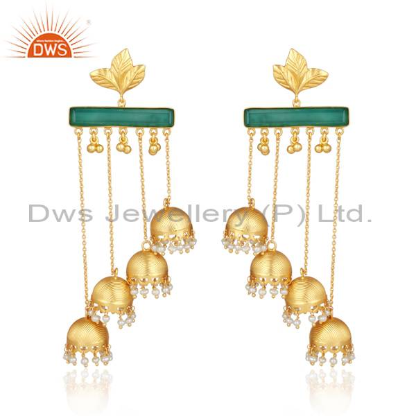 Exquisite Gold Vermeil Pearl & Green Onyx Jhumka Earrings