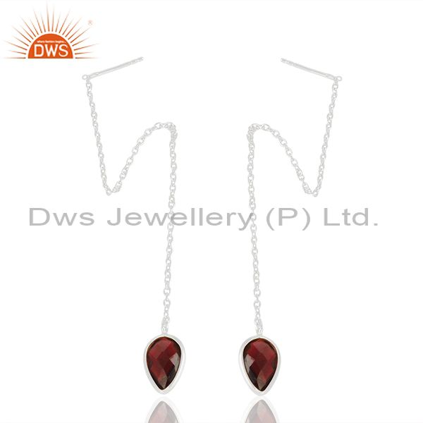 Garnet Gemstone 925 Silver Chain Earrings Jewelry Wholesale