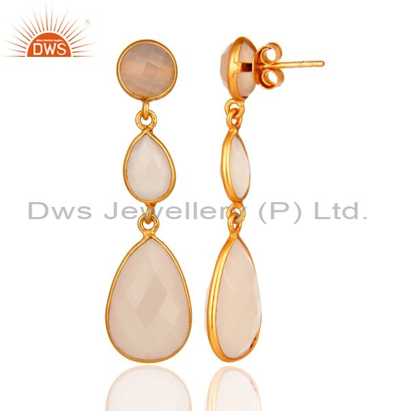 Gold Plated 925 Silver Faceted Dyed Rose Chalcedony Bezel-Set Dangle Earrings