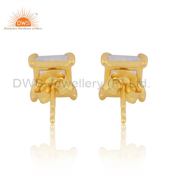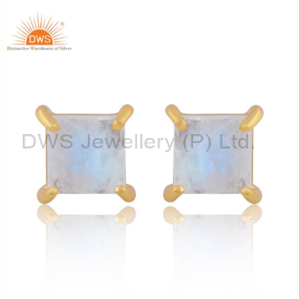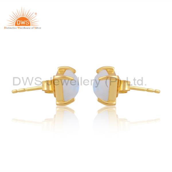Gold-Plated Rainbow Moonstone Studs - Cancer Birthstone