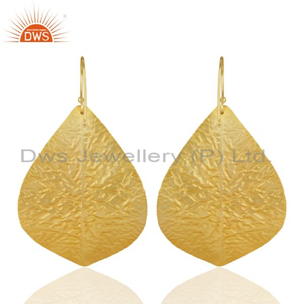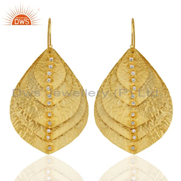 Gold Plated Sterling Silver Leaf Design Zircon Earring Manufacturer