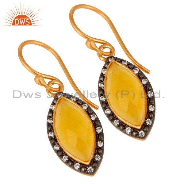 Gold Plated Sterling Silver Yellow Moonstone And Cubic Zirconia Dangle Earrings