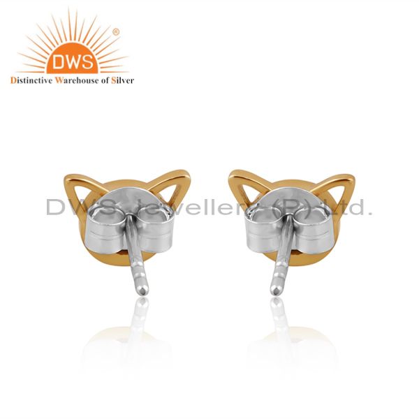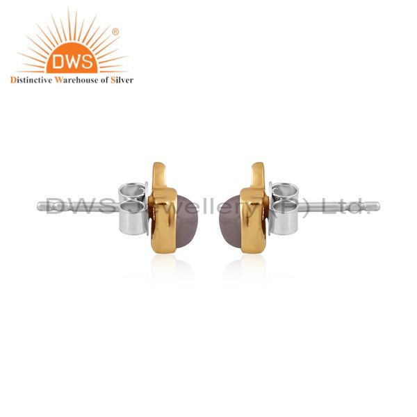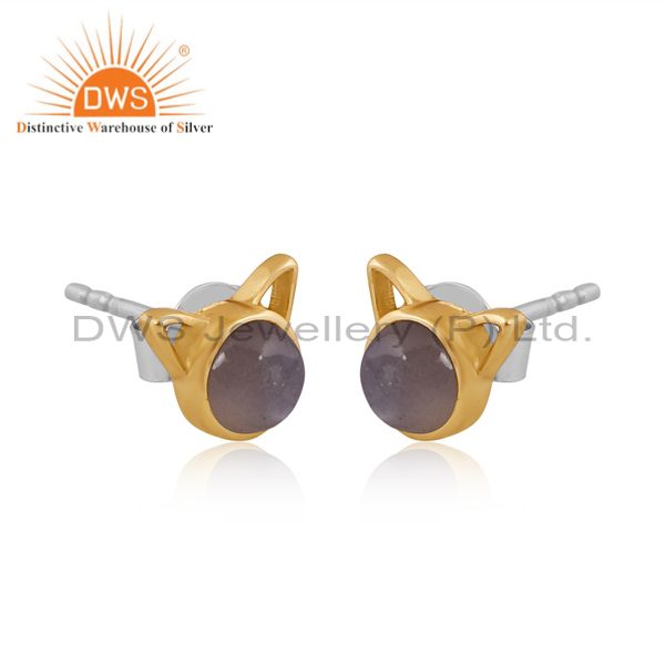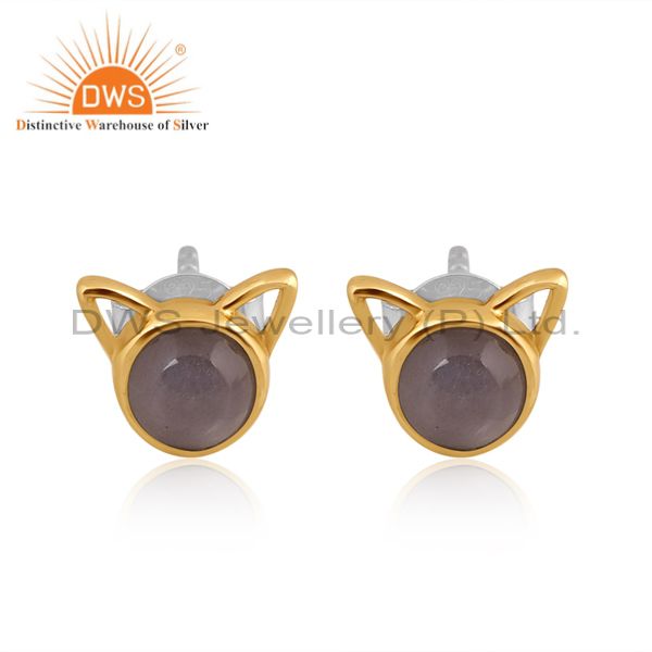 Gray Moonstone Brass Cat And Silver Studs Earrings
