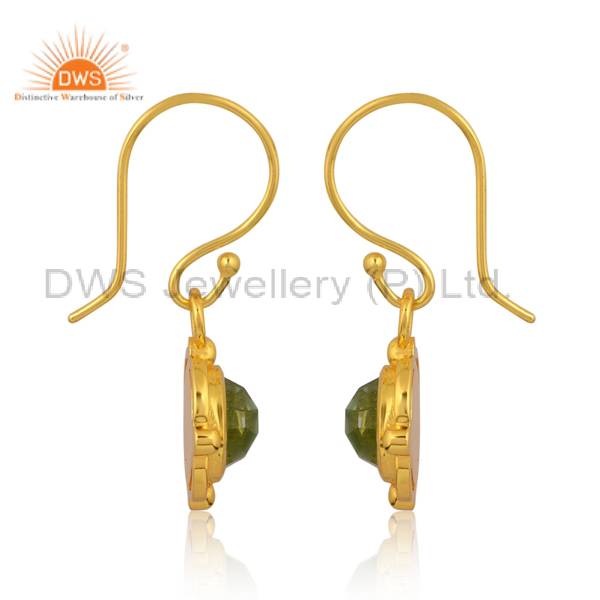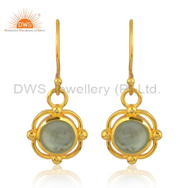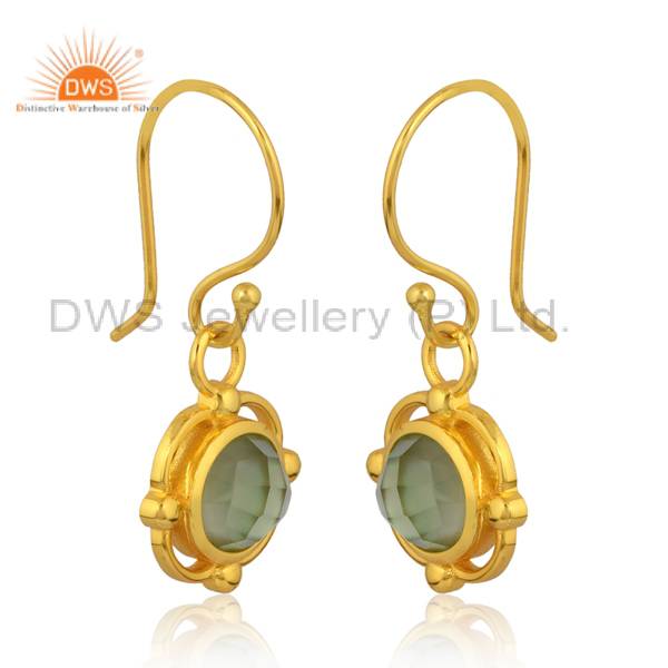 Green Amethyst Doublet Glass Nacre Gold Over Brass Earrings