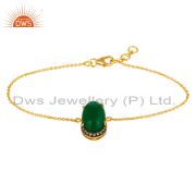 Green Aventurine And Cz 18K Gold Plated Sterling Silver Prong Set Stud Earrings