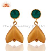Green Onyx Gemstone Filigree Ball Sterling Silver 18K Gold Plated Dangle Earring