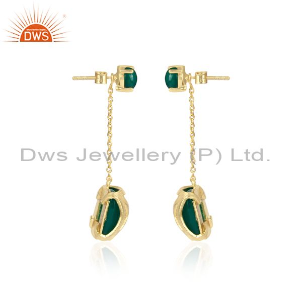 Green Onyx Set Gold On Silver Turkish Design Long Earrings