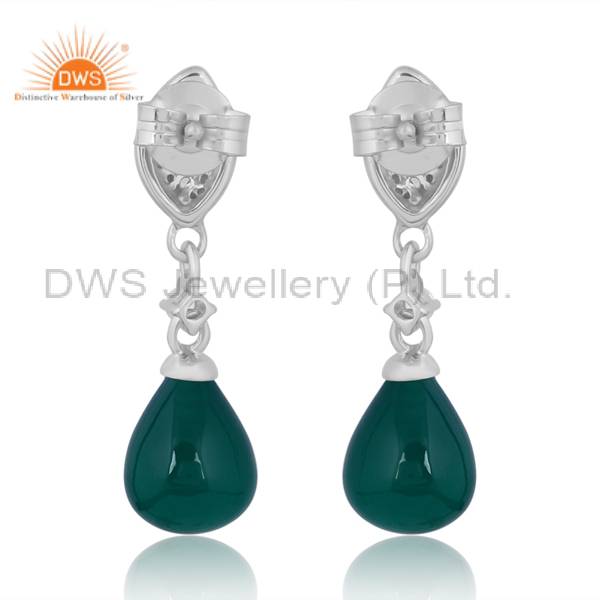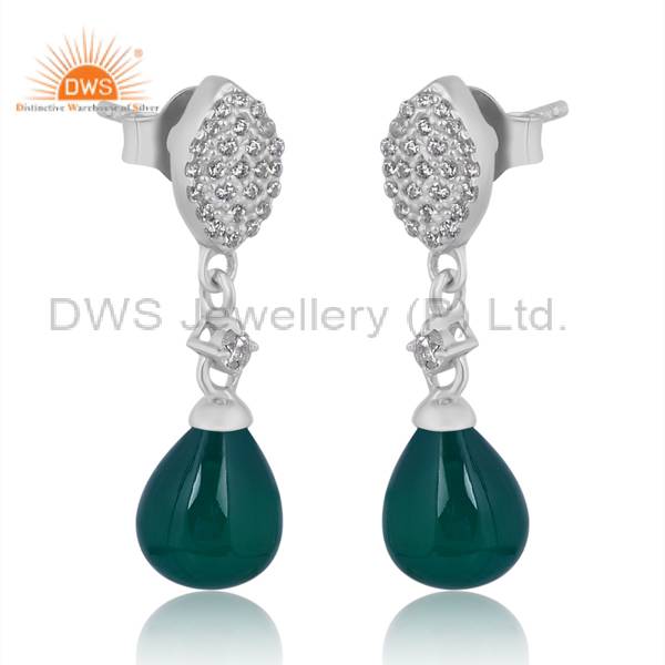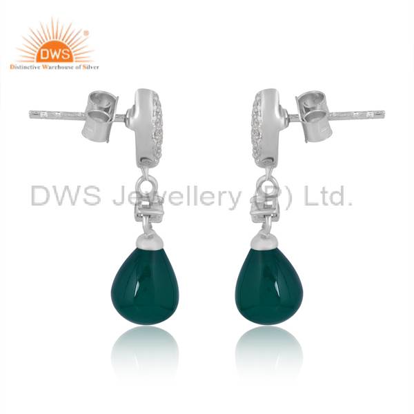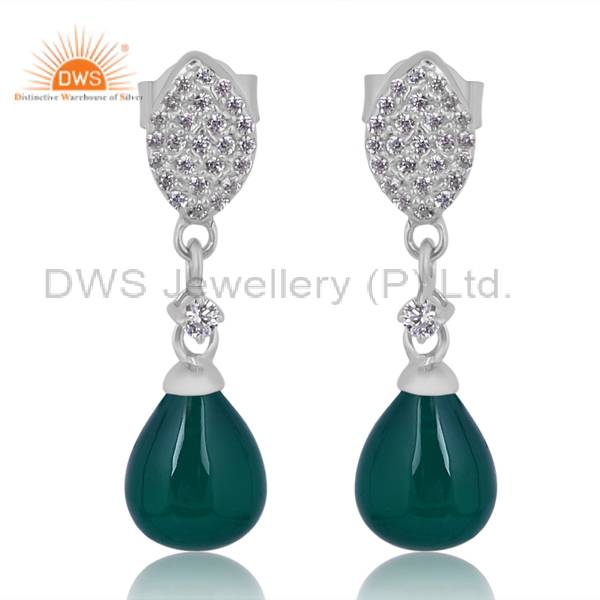 Green Onyx Silver Earrings With Cubic Zirconia Elegance