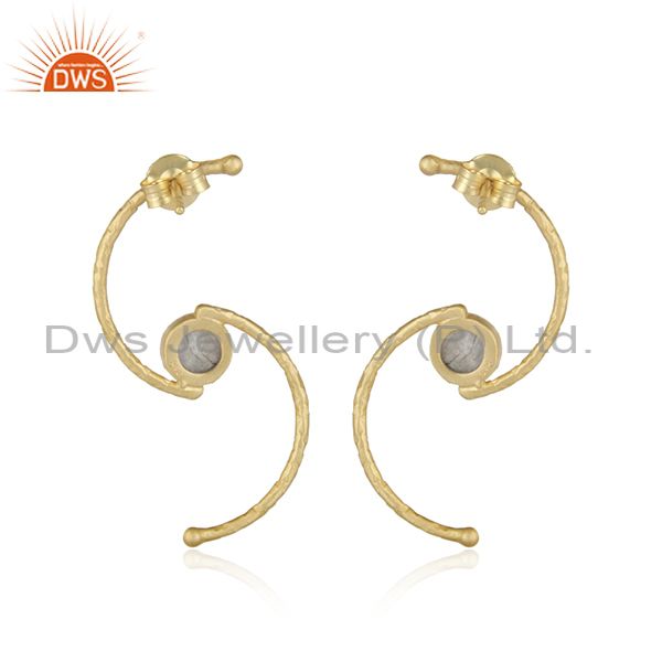 Hand Textured Dainty Spiral Gold On Silver Rainbow Moonstone Earring