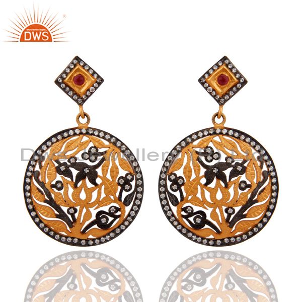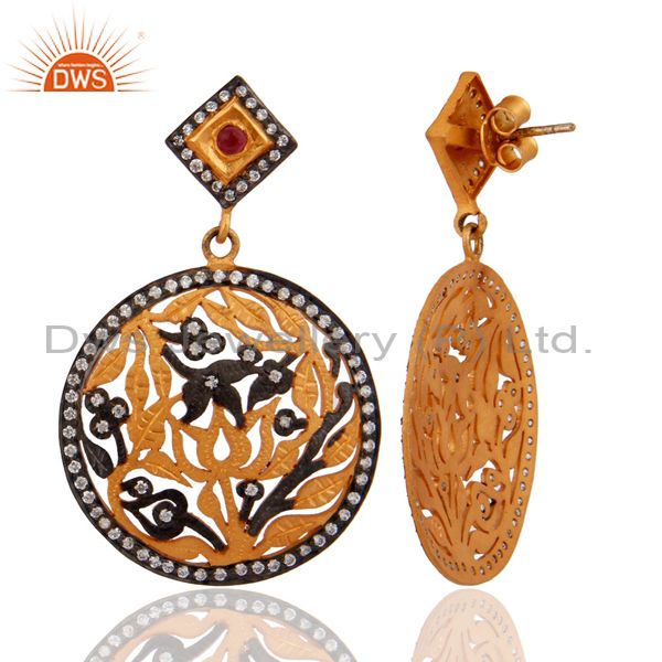 Handcrafted 925 Silver 18K Gold Plated Filigree Tourmaline & Cz Designer Earring
