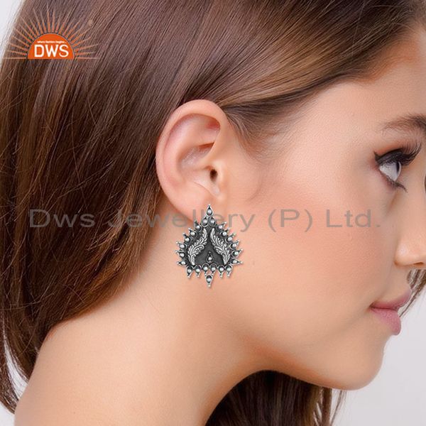 Handcrafted Artistic Tribal Textured Stud in Oxidized Silver 925
