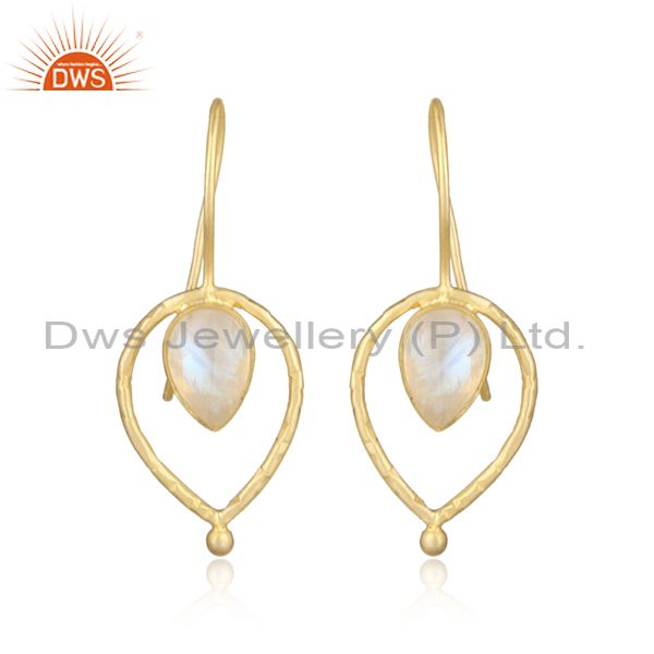 Handcrafted Silver Gold Plated Rainbow Moonstone Earrings