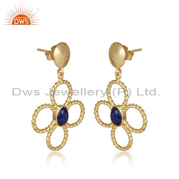 Handcrafted Twisted Gold on Silver Lapis Floral Dangle Earring