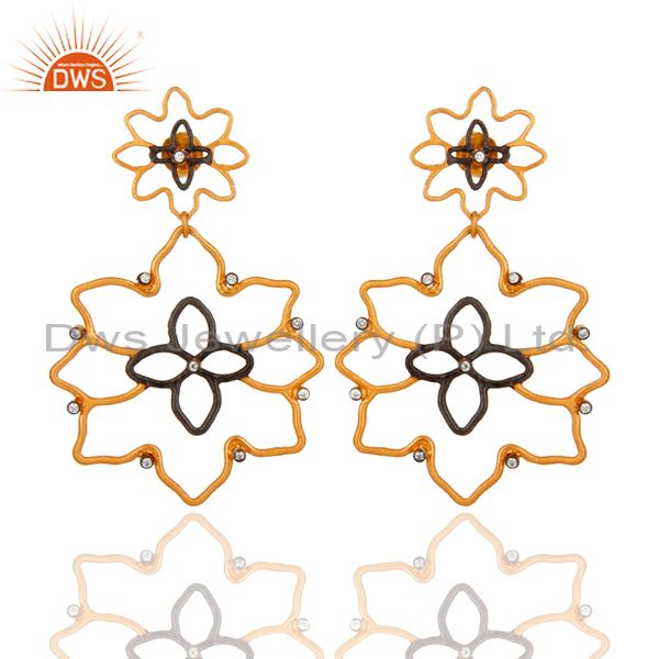 Handmade 18-Karat Yellow Gold Plated White Cubic Zirconia Designer Earring