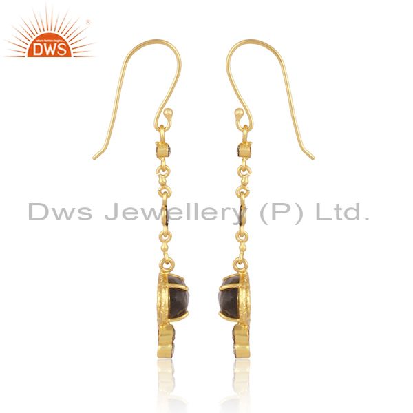 Handmade Gold Plated CZ Natural Labradorite Gemstone Drop Earrings